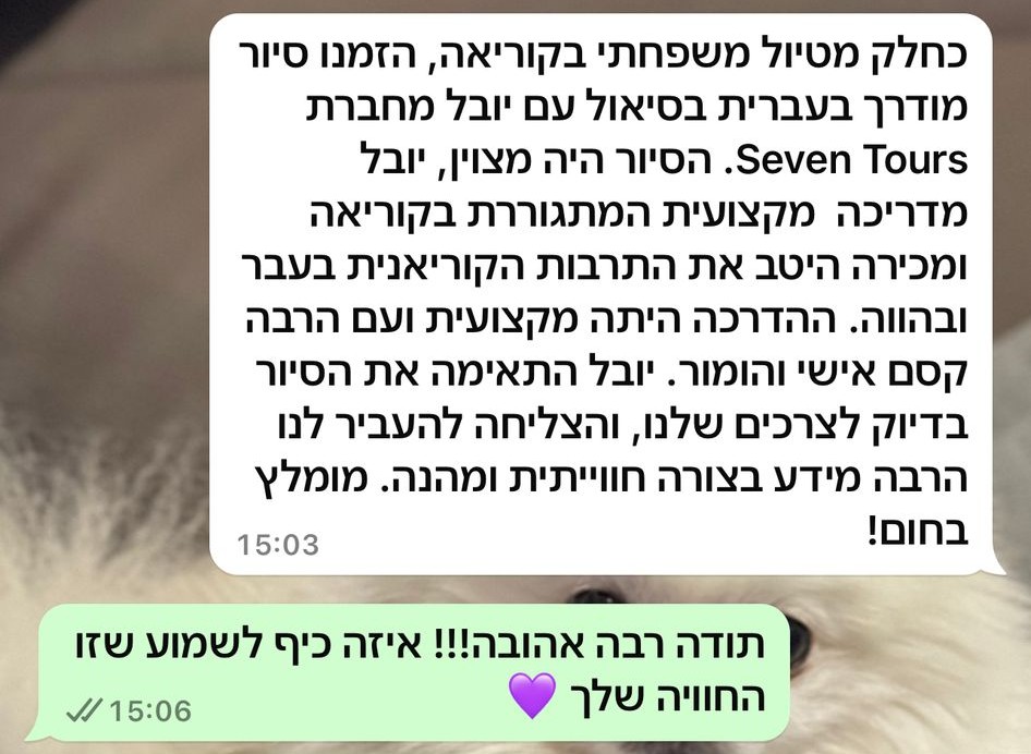 הצטרפו למשפחת הלקוחות המרוצים שלנו! אנו גאים לשתף אתכם בהמלצות חמות שקיבלנו מלקוחותינו, שחוו חופשות בלתי נשכחות בזכותנו. ההמלצות הן עדות למחויבות שלנו למצוינות, ליחס אישי ולתכנון טיולים מותאמים אישית. אנו מזמינים אתכם להצטרף ללקוחותינו המרוצים, לחוות את השירות המקצועי והמסור שלנו, וליצור יחד אתכם את חופשת החלומות שלכם.